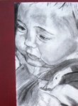 2009geschetst met potlood, afgewerkt met houtskool.geschilderd met acrylverf. in opdracht van een begeleider op mijn werk voor moederkesdag.